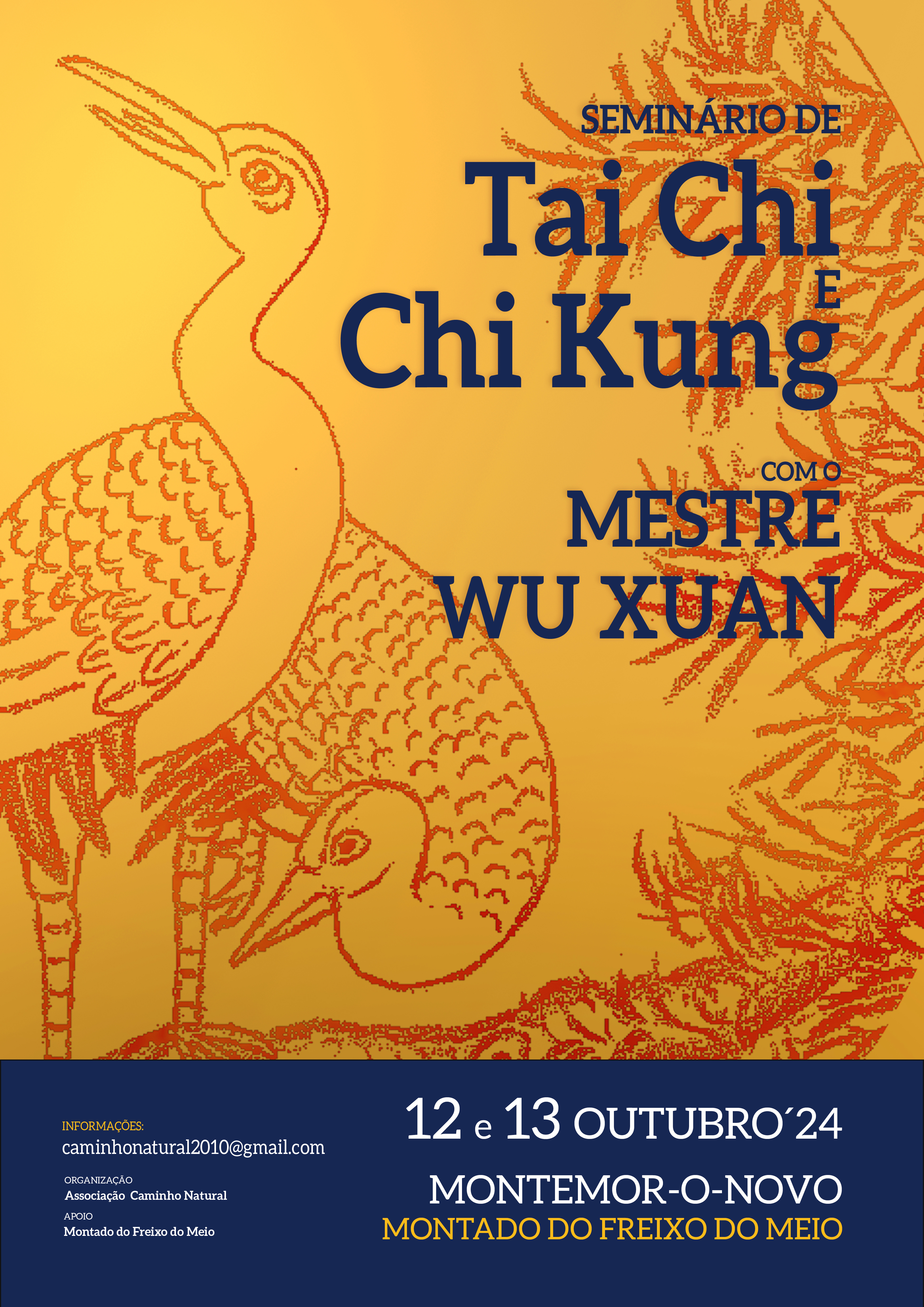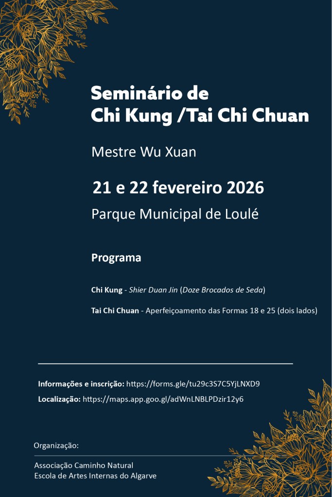 Este seminário anual destina-se tanto a praticantes destas artes internas como a participantes sem experiência. Quem participa pela primeira vez, terá oportunidade de praticar o sistema de Chi Kung do Mestre e aprender uma forma curta de Tai Chi, com 18 movimentos. Para os praticantes, para além do Chi Kung, iremos revisitar algumas formas de Tai Chi, a definir de acordo com o grupo presente.